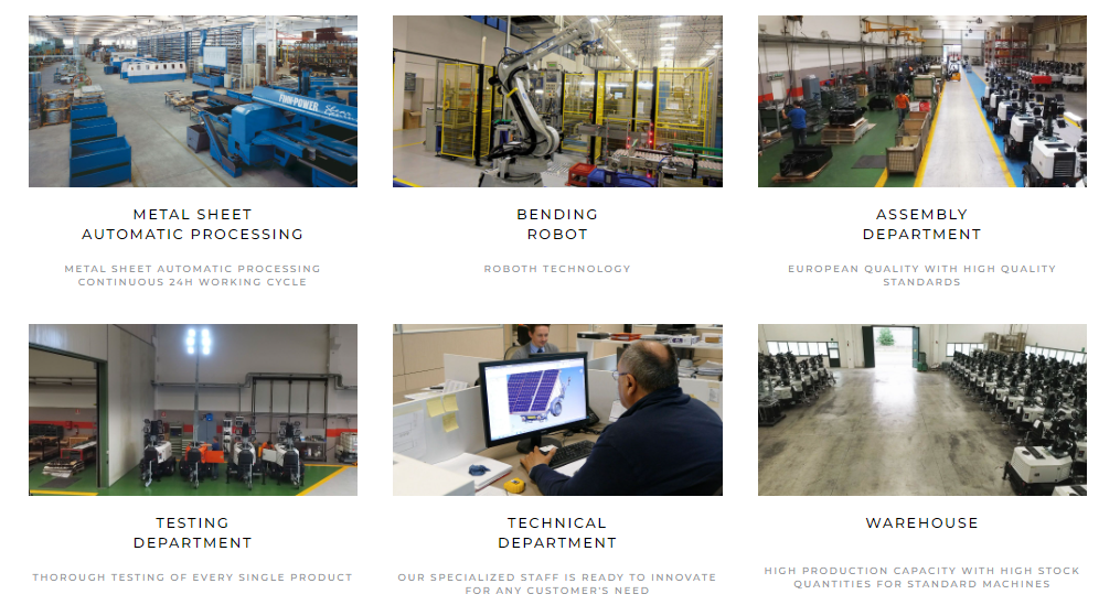 The whole production process, from the design stage to the delivery, is very accurately controlled in every detail. Our skills and tools allow us to make the following production processes internally: punching, bending, deep-drawing, shearing, laser cutting, welding, zinc coating, painting, assembly and final testing with a very strict quality control on the final product.